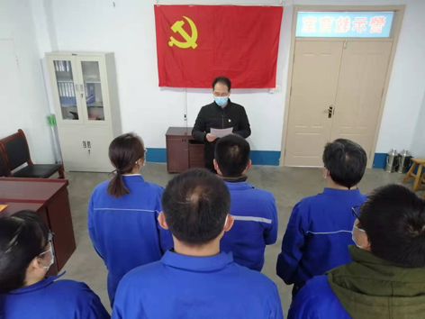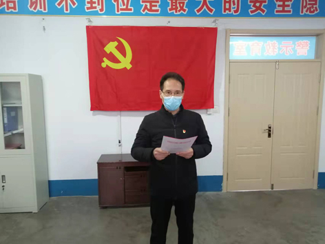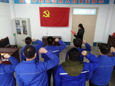 為堅(jiān)決打贏疫情防控阻擊戰(zhàn),切實(shí)抓好公司疫情防控工作,充分發(fā)揮黨支部的戰(zhàn)斗堡壘作用和黨員的先鋒模范作用,公司黨委研究決定,在公司疫情防控辦公室成立疫情防控臨時(shí)黨支部。 3月17日下午,公司在疫情防控辦公室舉行了莊重的臨時(shí)黨支部成立儀式。公司黨委書記李德軍出席儀式,宣讀了公司黨委《關(guān)于成立疫情防控臨時(shí)黨支部的通知》,并帶領(lǐng)臨時(shí)黨支部全體人員重溫入黨誓詞。