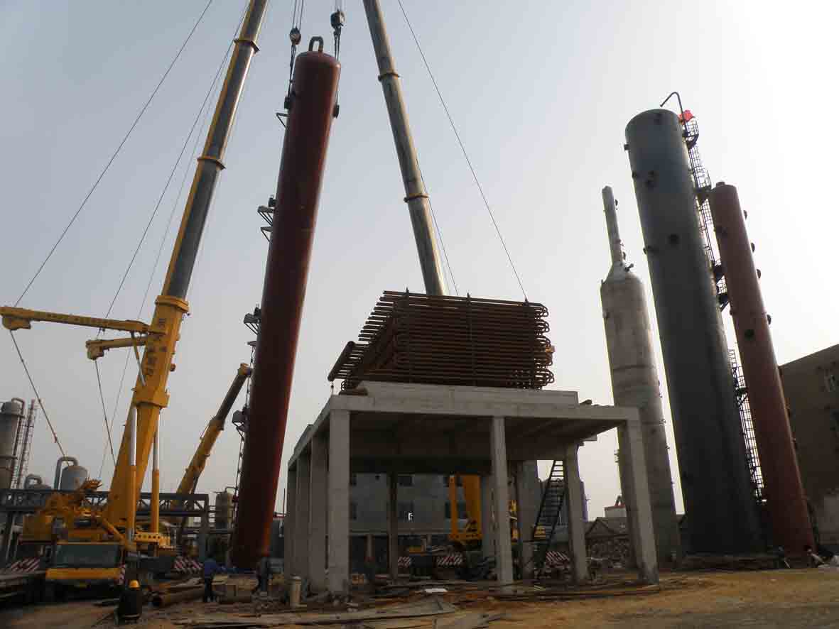 2012年4月28日,我公司脫碳技術(shù)改造工作中噸位最大、起吊安裝難度最大的二氧化碳吸收塔和閃蒸洗滌塔、洗滌塔三臺(tái)設(shè)備成功實(shí)現(xiàn)安裝就位。