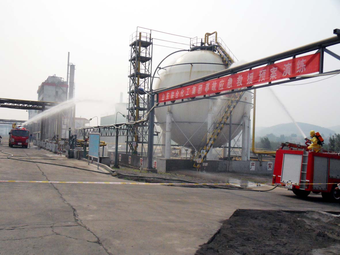 2012年6月21日上午,公司在東廠區(qū)液氨罐區(qū)舉行液氨泄漏應(yīng)急救援演練??h安監(jiān)局、環(huán)保局、消防大隊(duì)、衛(wèi)生局、縣內(nèi)其他危化品企業(yè)和公司領(lǐng)導(dǎo)及部分員工觀摩了本次演習(xí)。