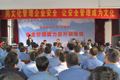 為全面提升新泰聯(lián)合化工中高層管理人員的綜合素質(zhì)和安全管理能力,強(qiáng)化安全意識,培養(yǎng)科學(xué)的管理思維模式,2013年3月23日,新泰聯(lián)合化工舉辦“中高層管理人員安全管理能力訓(xùn)練營”培訓(xùn),新泰市安監(jiān)局局長李光榮、公司總經(jīng)理龐世森出席了會議,新泰聯(lián)合化工49名中高層管理人員參加了培訓(xùn)。 本次培訓(xùn)由山東建大安全技術(shù)有限公司劉發(fā)東教授進(jìn)行授課,培訓(xùn)采用山東建大“咨詢式培訓(xùn)模式”,通過調(diào)研診斷、培訓(xùn)實(shí)施、互動體驗(yàn)、角色扮演、現(xiàn)場答疑與實(shí)踐輔導(dǎo)等形式,全面提升了學(xué)員的綜合素質(zhì)和管理技能。 圖為培訓(xùn)學(xué)習(xí)現(xiàn)場  |