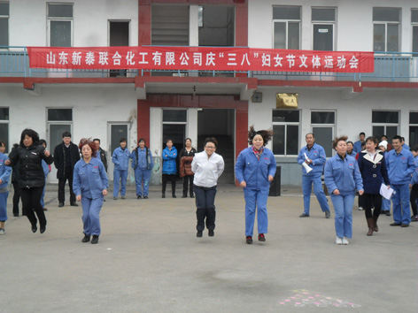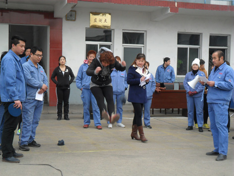 在“三八”國(guó)際婦女節(jié)到來(lái)之際,為豐富節(jié)日期間廣大女職工的業(yè)余文化生活,活躍節(jié)日氣氛,展現(xiàn)女職工愛(ài)崗敬業(yè)、健康向上的精神面貌,公司于3月8日上午在辦公樓前舉辦了文體娛樂(lè)活動(dòng),子公司新泰公司也同時(shí)舉辦了相關(guān)慶祝活動(dòng),總公司活動(dòng)現(xiàn)場(chǎng)設(shè)置了趣味保齡球、定點(diǎn)套圈、沙包投準(zhǔn)、摸石過(guò)河等四個(gè)項(xiàng)目,共9個(gè)代表隊(duì)68名選手參加了比賽。新泰公司共5個(gè)代表隊(duì)45名參賽選手參加了“ 雙腳跳遠(yuǎn)” “腳扔沙包”及“趣味保齡球”三個(gè)項(xiàng)目的比賽,比賽結(jié)束后,對(duì)獲獎(jiǎng)人員進(jìn)行了現(xiàn)場(chǎng)頒獎(jiǎng)。(圖為比賽現(xiàn)場(chǎng))