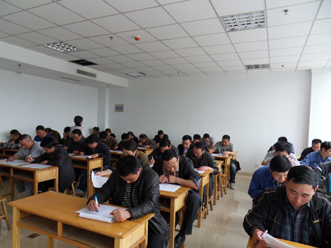 根據(jù)2015年公司級(jí)教育培訓(xùn)計(jì)劃和公司實(shí)際,為檢驗(yàn)前一段時(shí)間基層及以上管理人安全培訓(xùn)的效果,公司于2015年4月28日分三批對(duì)基層及以上管理人員進(jìn)行了安全考試。共有200余人參加了此次考試。圖為考試現(xiàn)場(chǎng) (勞資處 崔立偉)