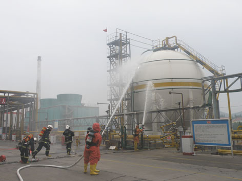 為檢驗(yàn)公司危險(xiǎn)化學(xué)品事故應(yīng)急處置能力,防止危化品泄漏造成火災(zāi)、爆炸、傷亡以及環(huán)境污染事故發(fā)生。6月14日上午,公司在液氨罐區(qū)舉行了液氨泄漏應(yīng)急救援演練??h消防大隊(duì)、縣環(huán)保局和公司相關(guān)領(lǐng)導(dǎo)及有關(guān)企業(yè)部分員工觀摩了本次演練。