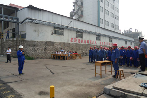 為檢驗(yàn)公司應(yīng)對(duì)安全事故的快速反應(yīng)和應(yīng)急處置能力,保證發(fā)生事故時(shí)能及時(shí)有效地進(jìn)行控制,最大限度地避免和減少財(cái)產(chǎn)損失、環(huán)境危害與社會(huì)影響。6月29日上午,公司在液氨罐區(qū)舉行了生產(chǎn)安全事故綜合應(yīng)急救援演練??h安監(jiān)局、縣環(huán)保局、縣總工會(huì)和公司相關(guān)領(lǐng)導(dǎo)及公司部分員工觀摩和參加了本次演練。 本次演練檢驗(yàn)了公司人員對(duì)綜合應(yīng)急預(yù)案的掌握程度,檢驗(yàn)了應(yīng)急救援人員對(duì)應(yīng)急救援設(shè)施和器材的熟練使用程度,各部門和應(yīng)急救援隊(duì)得到了實(shí)戰(zhàn)鍛煉的機(jī)會(huì),取得了良好的效果。同時(shí)檢驗(yàn)論證了公司生產(chǎn)安全事故綜合應(yīng)急救援預(yù)案符合實(shí)際,與事故應(yīng)急處置能力相適應(yīng),應(yīng)急響應(yīng)程序和保障措施等內(nèi)容切實(shí)可行。 公司安全生產(chǎn)副總逯劍要求公司各制造部、車間、崗位人員在下一步工作中繼續(xù)加強(qiáng)對(duì)應(yīng)急救援知識(shí)的學(xué)習(xí),平時(shí)加強(qiáng)演練,注重演練效果,熟練掌握應(yīng)急救援設(shè)施和器材的使用方法。在應(yīng)急情況下能夠沉著、冷靜,按照日常預(yù)案演練的程序迅速、恰當(dāng)?shù)夭扇〈胧?,控制減少事故危害影響,避免人員傷亡和設(shè)備財(cái)產(chǎn)的損失,確保企業(yè)的安全生產(chǎn)。 演練前,縣總工會(huì)領(lǐng)導(dǎo)為工作在一線的職工發(fā)放了安全帽,督促企業(yè)加強(qiáng)夏季高溫期間的職工勞動(dòng)保護(hù)工作。圖為演練現(xiàn)場(chǎng)。